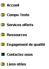 Accueil | Compu-Texte | Services offerts | Ressources | Engagement de qualité | Contactez-nous | Liens utiles